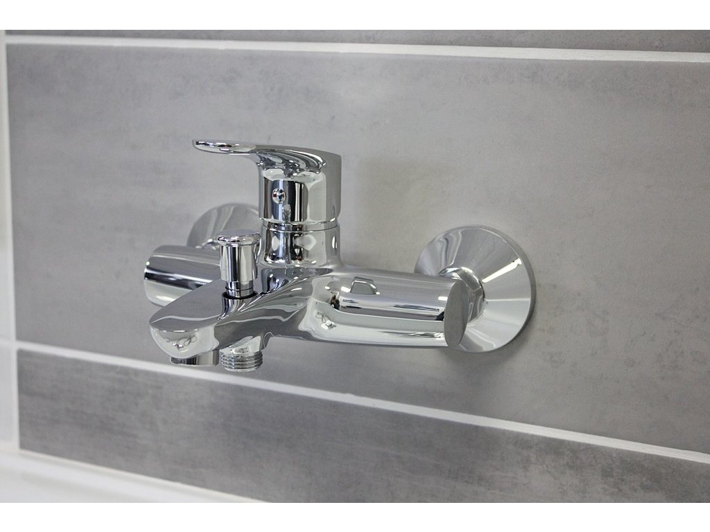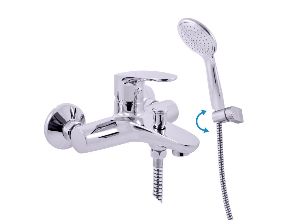 Настенный смеситель для ванны с душем и поворотным держателем.