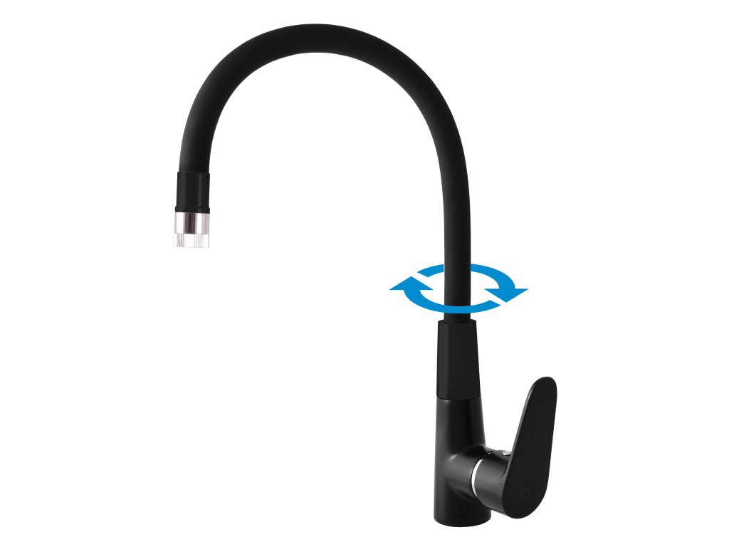 AMUR - смеситель кухонный с гибким изливом, цвет Черный матовый/Хром, арт. AM719.5/11CMATC, RAV Slezák