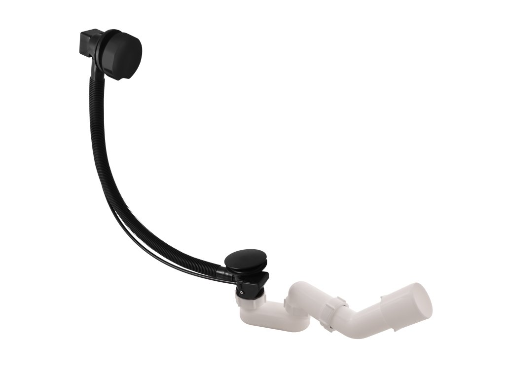 сифон для ванны, полуавтомат, металл/пластик, 600 мм. (сливной сифон S-образный латунный), цвет черный матовый, арт. MD0588CMAT, RAV Slezák