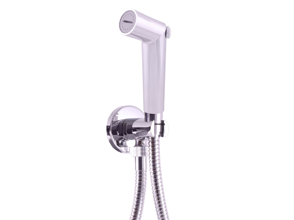 душевой комплект для биде (лейка, шланг) и проточный держатель лейки с отводом и STOP вентилем, цвет хром, арт. SK6717-1, RAV Slezák