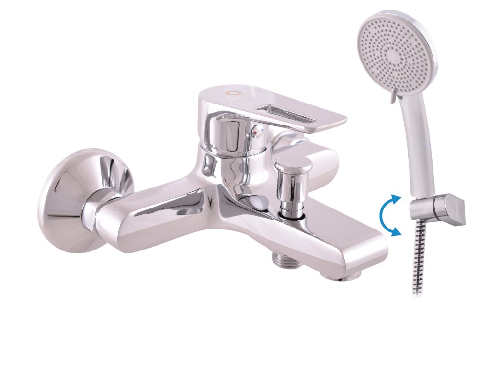 Настенный смеситель для ванны с душем и поворотным держателем.