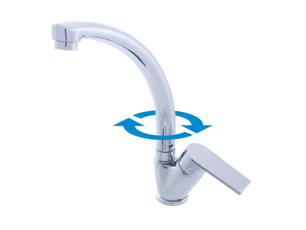 Отдельно стоящий смеситель для мойки с поворотным изливом.