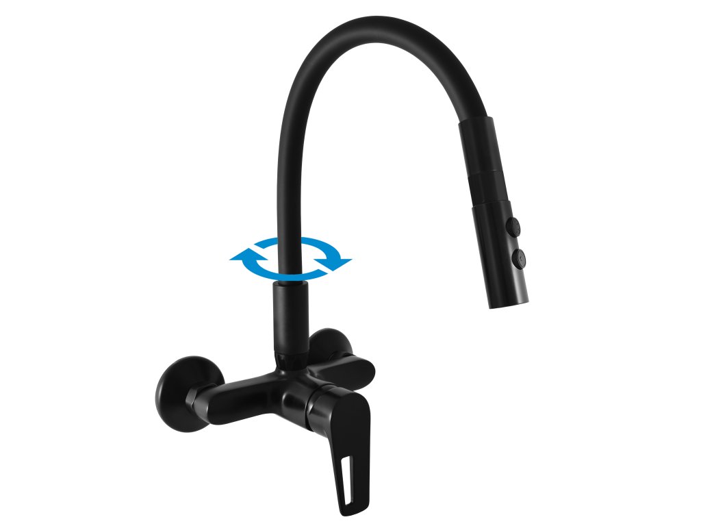 COLORADO - смеситель кухонный настенный с гибким изливом, цвет черный матовый, арт. CO202.5/12CMAT, RAV Slezák