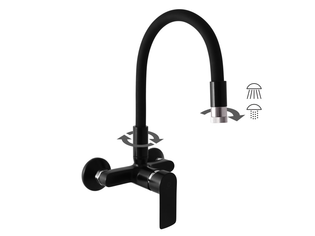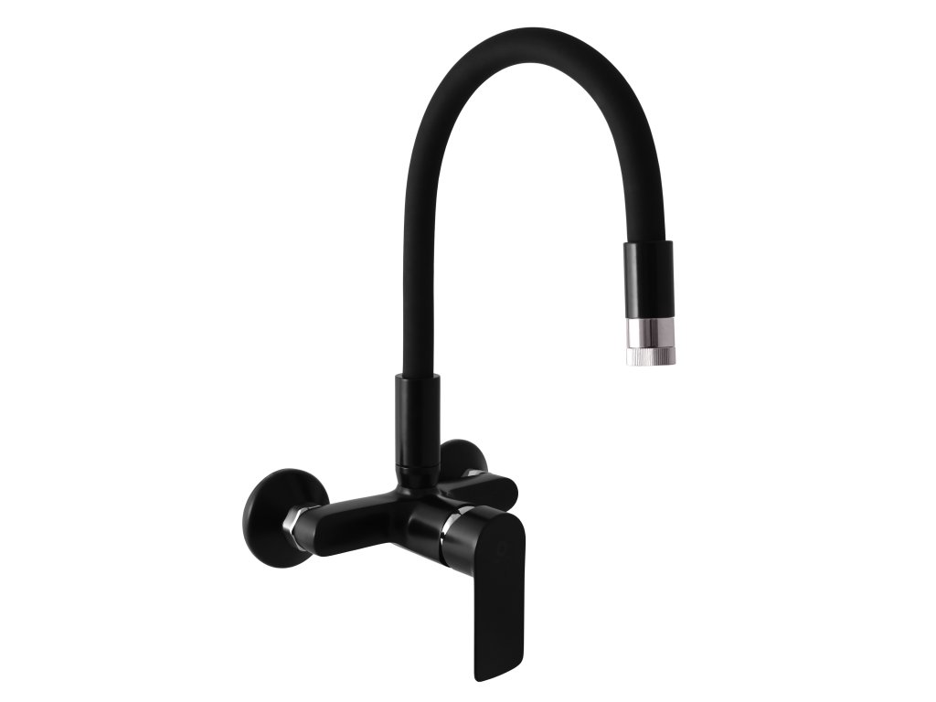 COLORADO - смеситель кухонный настенный с гибким изливом, цвет Черный матовый/Хром, арт. CO102.5/11CMATC, RAV Slezák