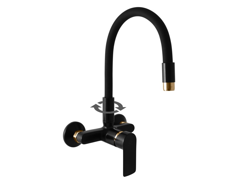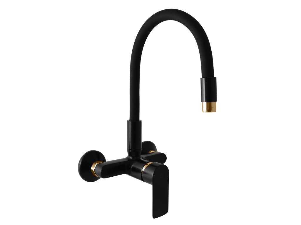 COLORADO - смеситель кухонный настенный с гибким изливом, цвет Черный матовый/Золотистый глянцевый, арт. CO102.5/10CMATZ, RAV Slezák