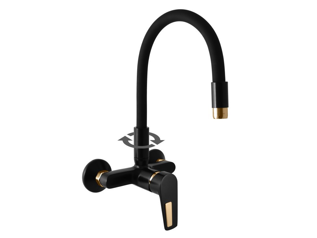 COLORADO - смеситель кухонный настенный с гибким изливом, цвет Черный матовый/Золотистый глянцевый, арт. CO302.5/10CMATZ, RAV Slezák
