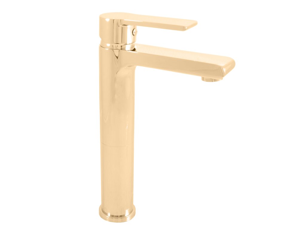 Смеситель для умывальника на столешницу, высокий - золотой.
