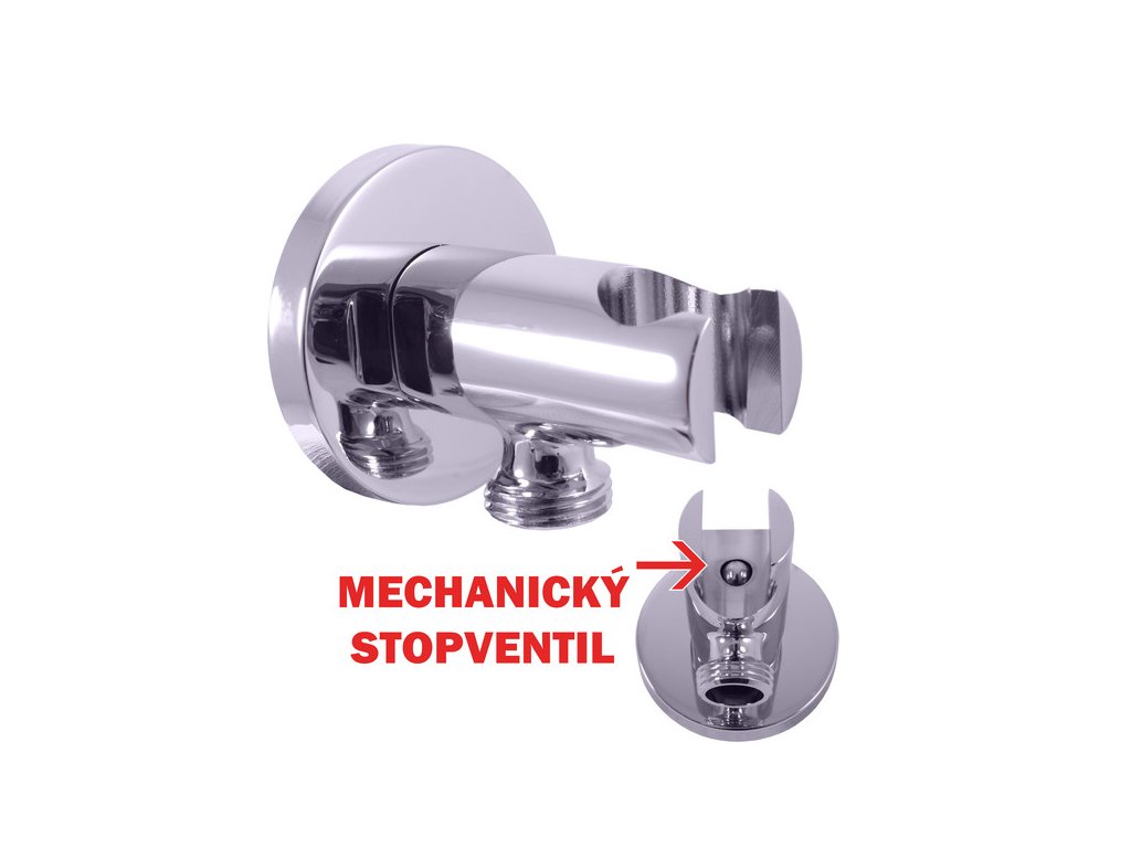 проточный держатель душевой лейки с отводом и STOP вентилем, металл, цвет хром, арт. MD0750, RAV Slezák