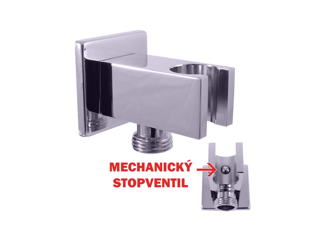 проточный держатель душевой лейки с отводом и STOP вентилем, металл, цвет хром, арт. MD0751, RAV Slezák