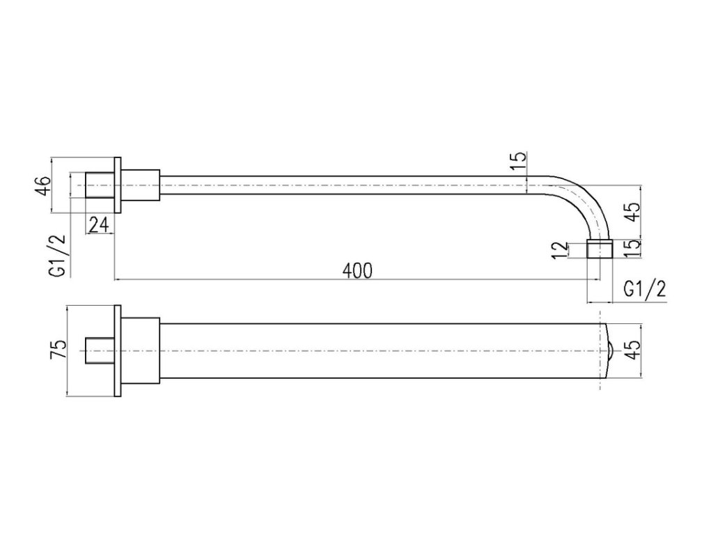 излив настенный для большого головного душа, длина 40 см, металл, цвет хром, арт. MD0701, RAV Slezák
