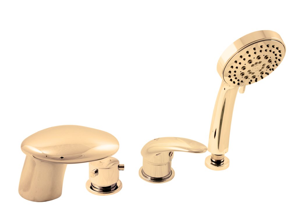 DUNAJ - каскадный смеситель на борт ванны (4 отверстия), цвет золотистый глянцевый, арт. D471.5PZ, RAV Slezák