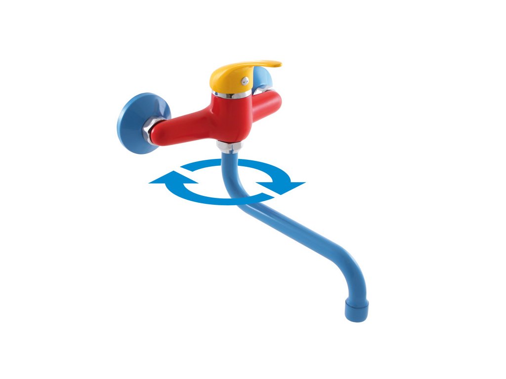 JUNIOR - JUNIOR смеситель кухонный/для умывальника настенный, цвет хром/красный/синий/желтый, арт. SAJ001.5/21, RAV Slezák