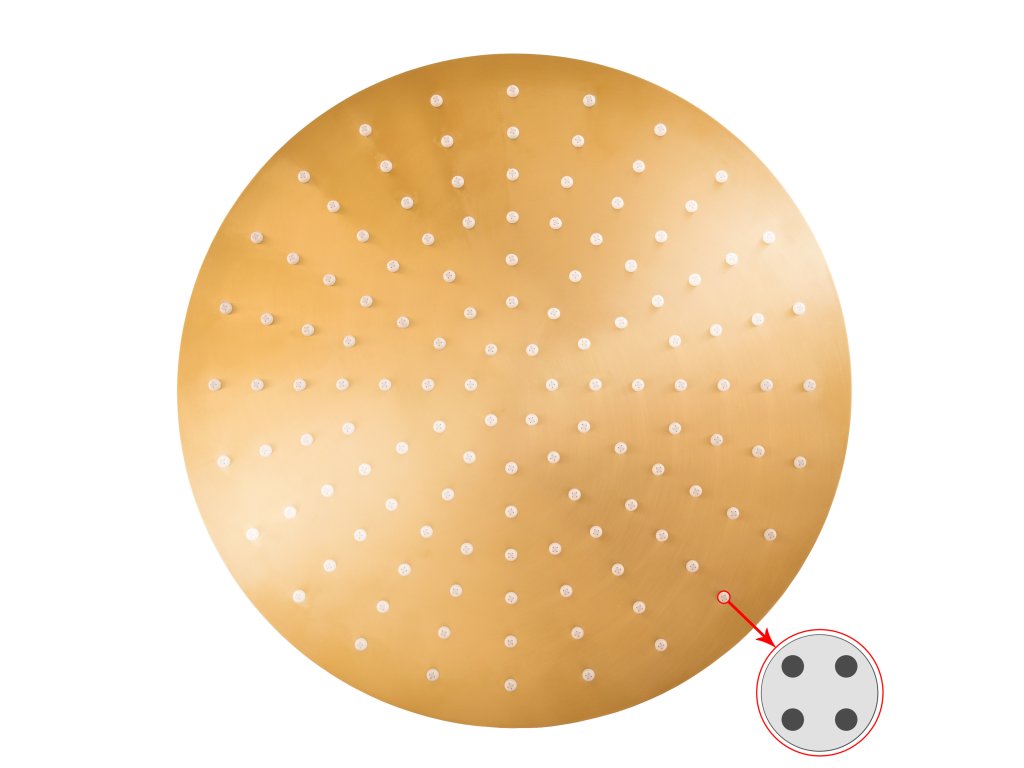 Верхний душ с защитой от известкового налета - блестящее золото.