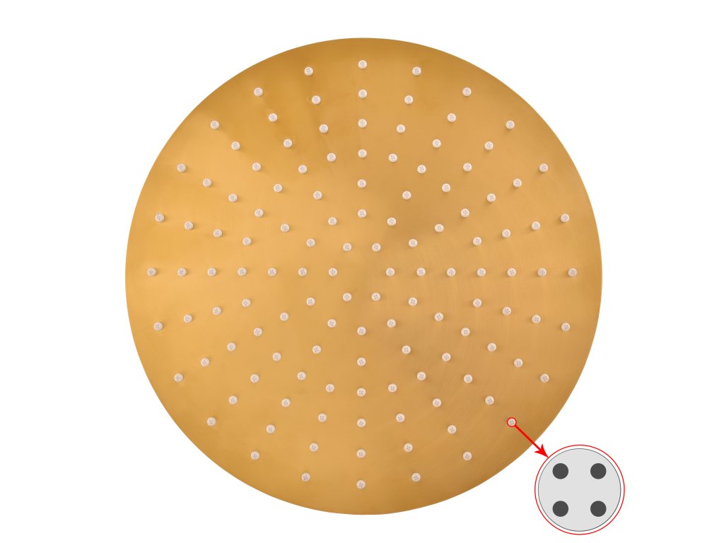 головная лейка, d300 мм., металл, 1 режим, сопло на 4-е отверстия, функция EasyClean, металл, 1 режим, цвет золотистый крацованный, арт. KS0001/4ZK, RAV Slezák