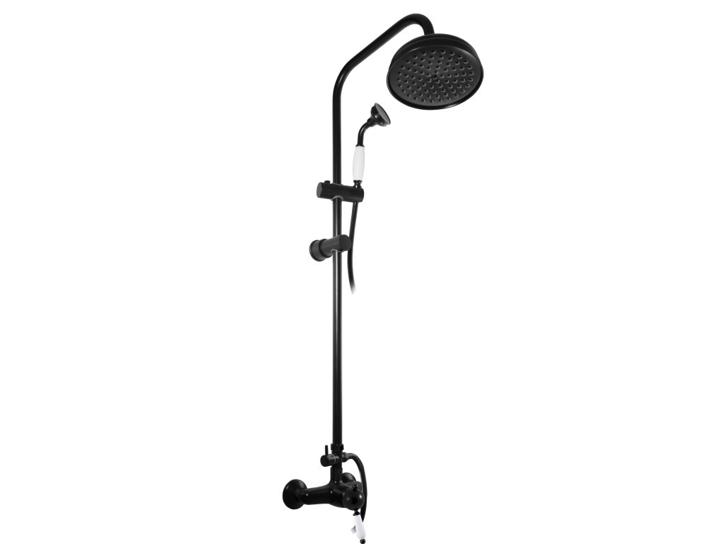 LABE - смеситель для душа с душевым набором и стойкой с головной лейкой, цвет черный матовый, арт. L581.5/7CMAT, RAV Slezák