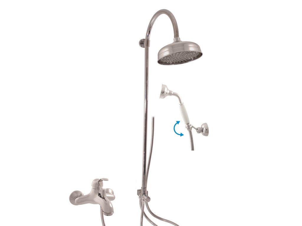 LABE - смеситель для ванны/душа с душевым набором и стойкой с головной лейкой, цвет хром, арт. L054.5/3, RAV Slezák