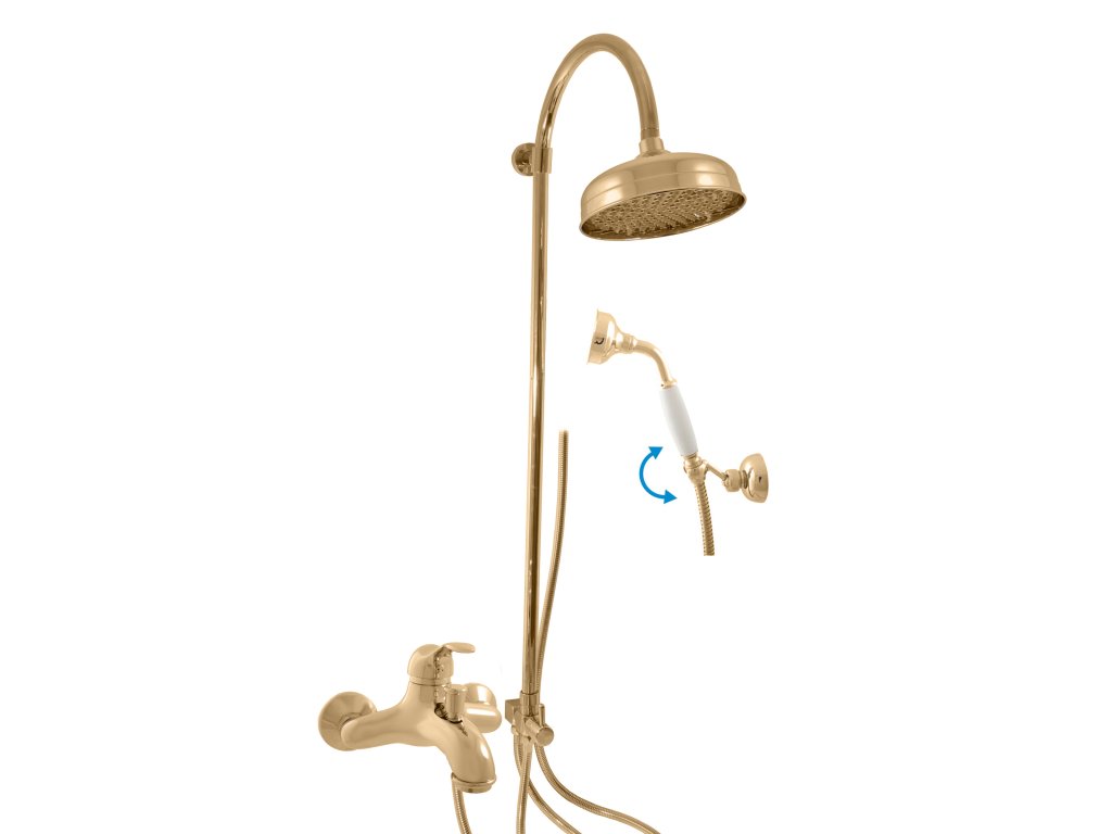 LABE - смеситель для ванны/душа с душевым набором и стойкой с головной лейкой, цвет золотистый глянцевый, арт. L054.5/3Z, RAV Slezák