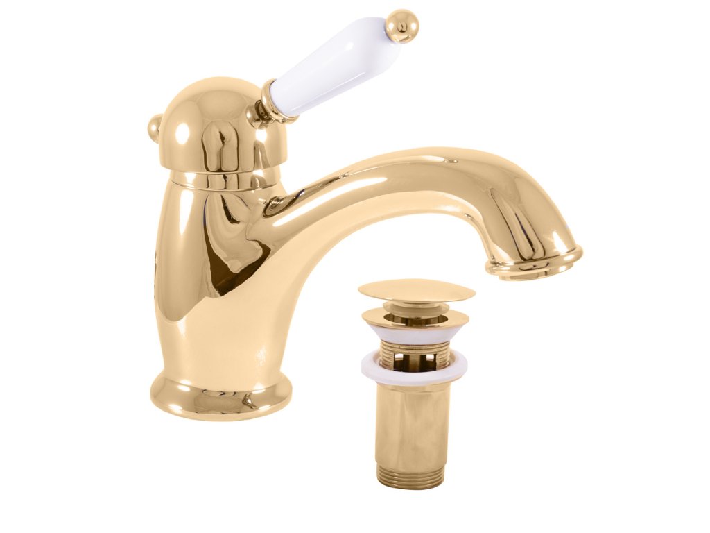 LABE - смеситель для умывальника с донным клапаном (или сифоном CLICK-CLACK), цвет золотистый глянцевый, арт. L527.5KZ, RAV Slezák