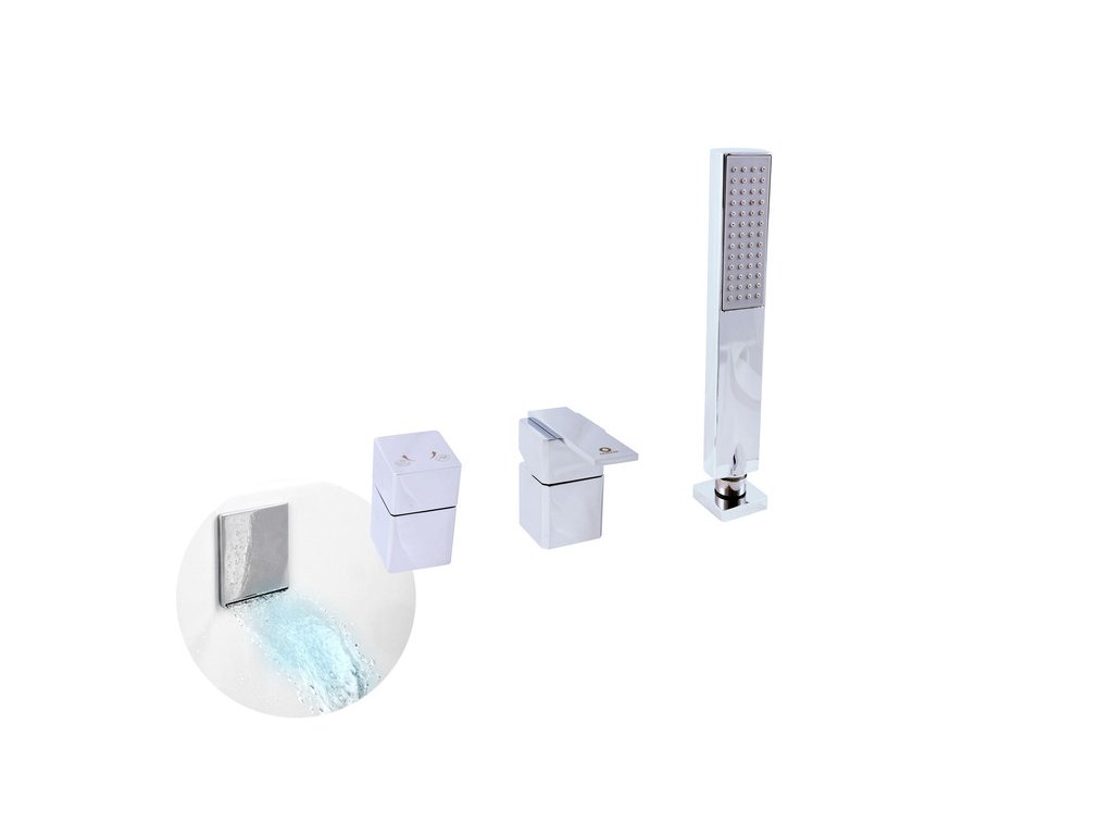Отдельно стоящий смеситель для ванны на четыре отверстия с керамическим переключателем, самовтягивающимся шлангом длиной 2 м и душем.