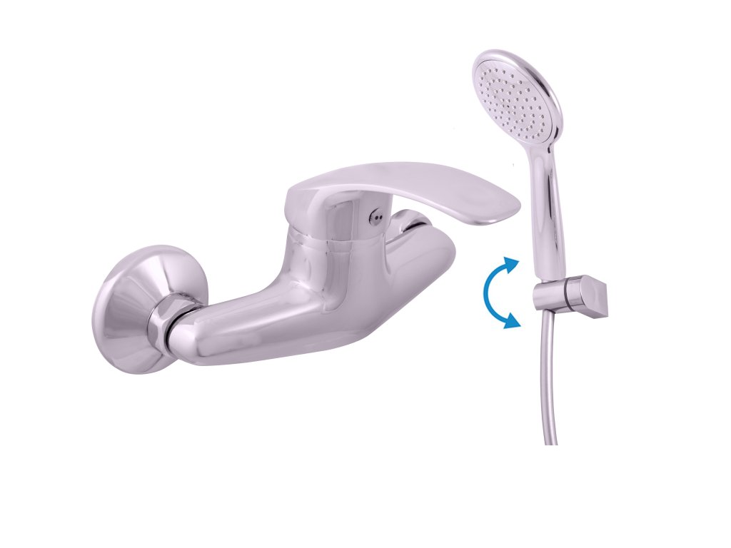 Настенный смеситель для душа с душем и вращающимся держателем.
