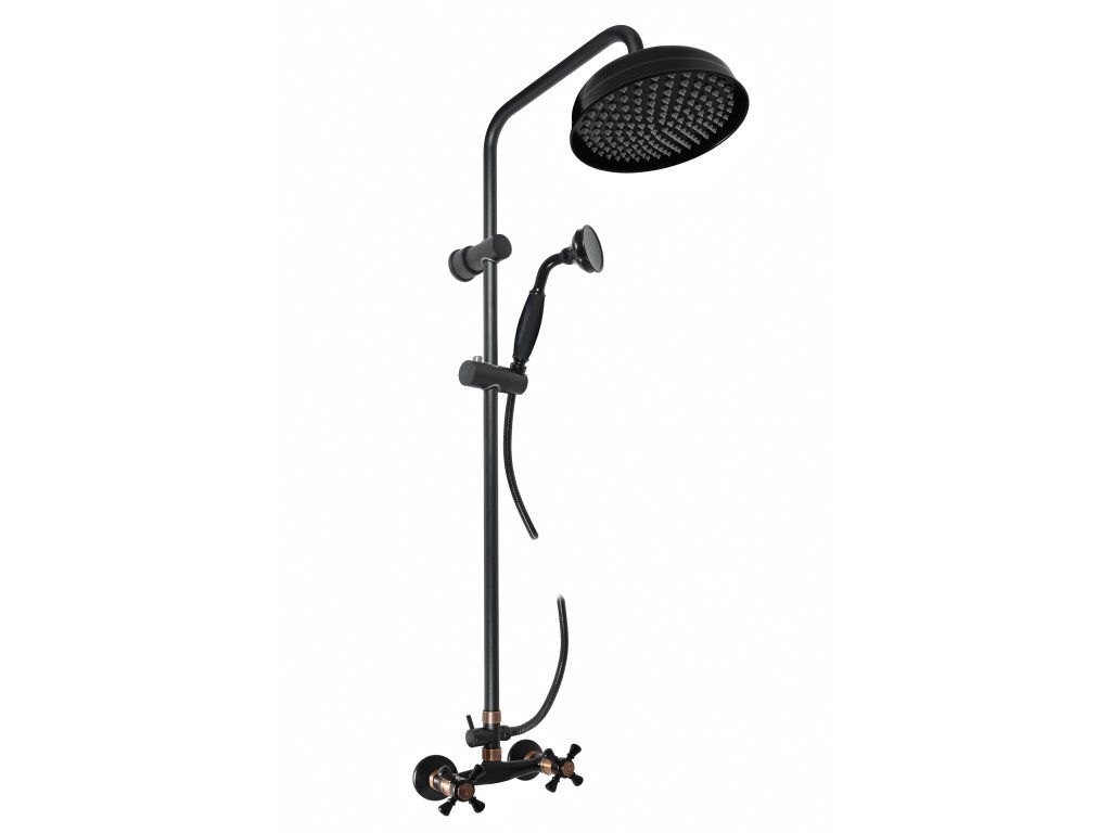MORAVA RETRO - смеситель для душа с душевым набором и стойкой с головной лейкой, цвет черный матовый/бронза, арт. MK381.5/7CMATSM, RAV Slezák