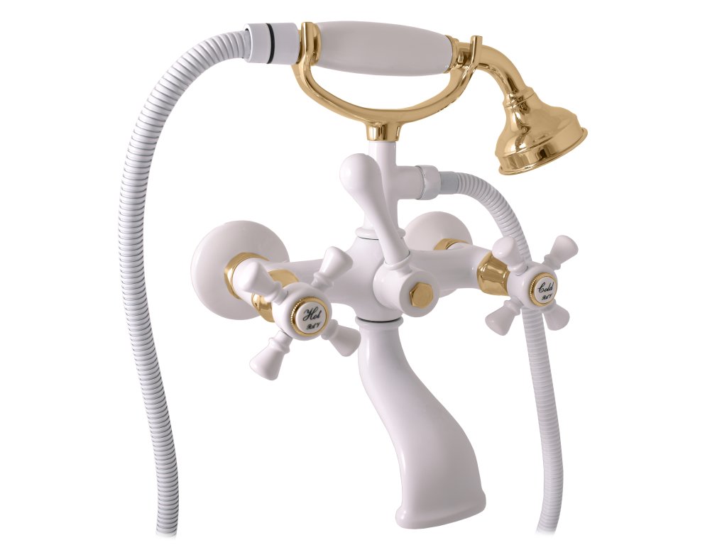 MORAVA RETRO - смеситель для ванны/душа с душевым набором, цвет белый/золотистый глянцевый, арт. MK359.5/2BZ, RAV Slezák