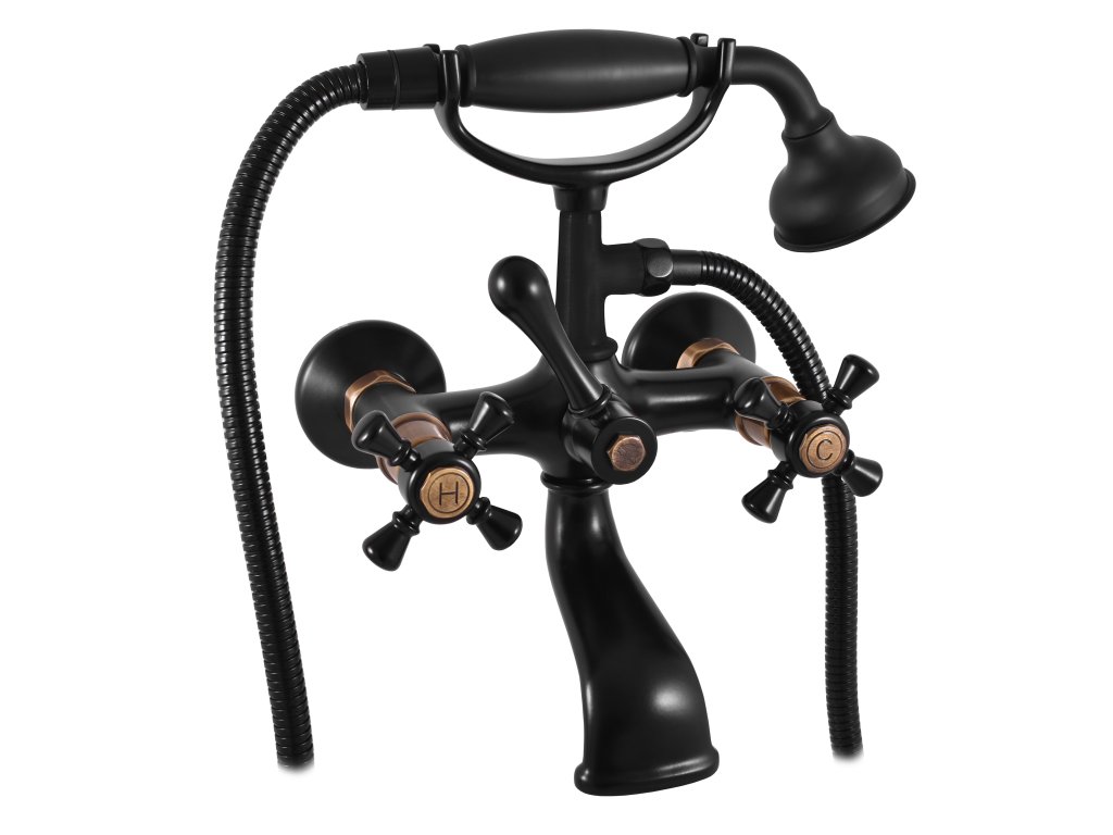 MORAVA RETRO - смеситель для ванны/душа с душевым набором, цвет черный матовый/бронза, арт. MK359.5/2CMATSM, RAV Slezák