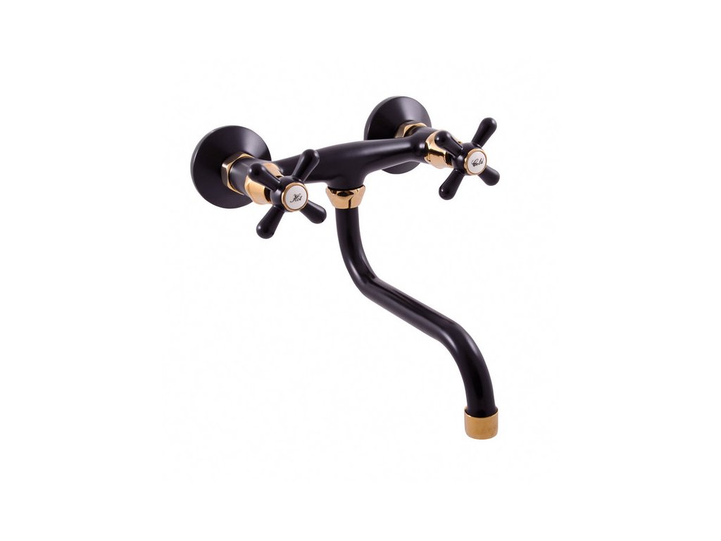MORAVA RETRO - смеситель кухонный/для умывальника настенный, цвет черный матовый/золотистый глянцевый, арт. MK101.5/21CMATZ, RAV Slezák