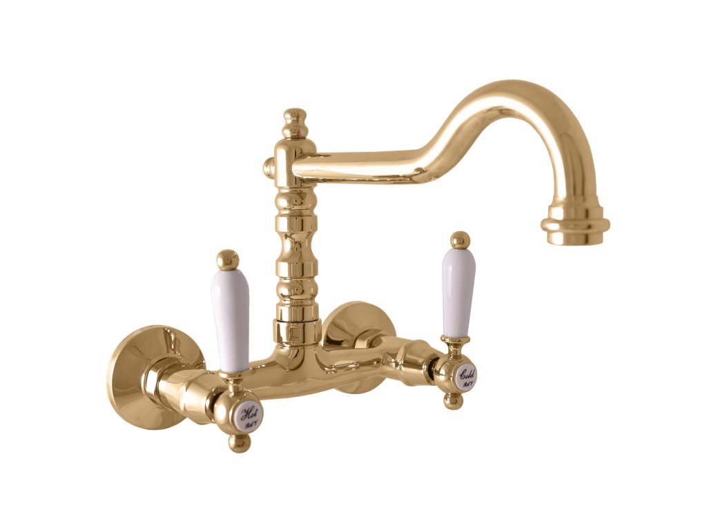 MORAVA RETRO - смеситель кухонный/для умывальника настенный, цвет золотистый глянцевый, арт. MK502.5/28Z, RAV Slezák