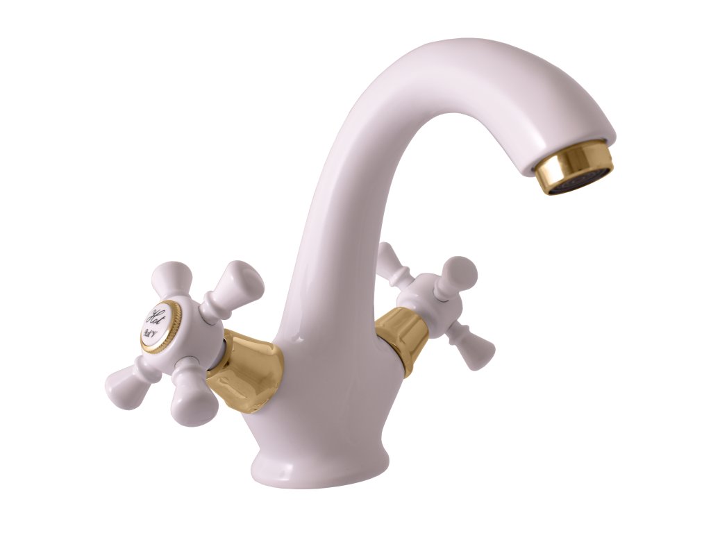 MORAVA RETRO - смеситель для умывальника, цвет белый/золотистый глянцевый, арт. MK328.5BZ, RAV Slezák