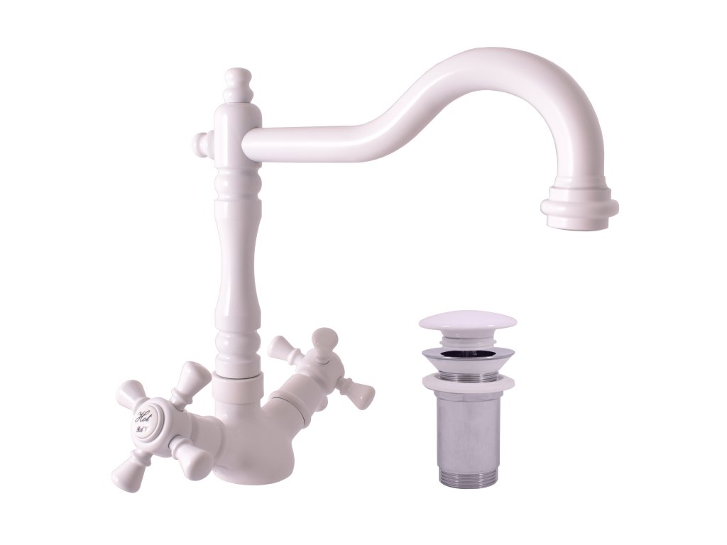 MORAVA RETRO - смеситель для умывальника с сифоном CLICK-CLACK, цвет белый, арт. MK321.5/8B, RAV Slezák