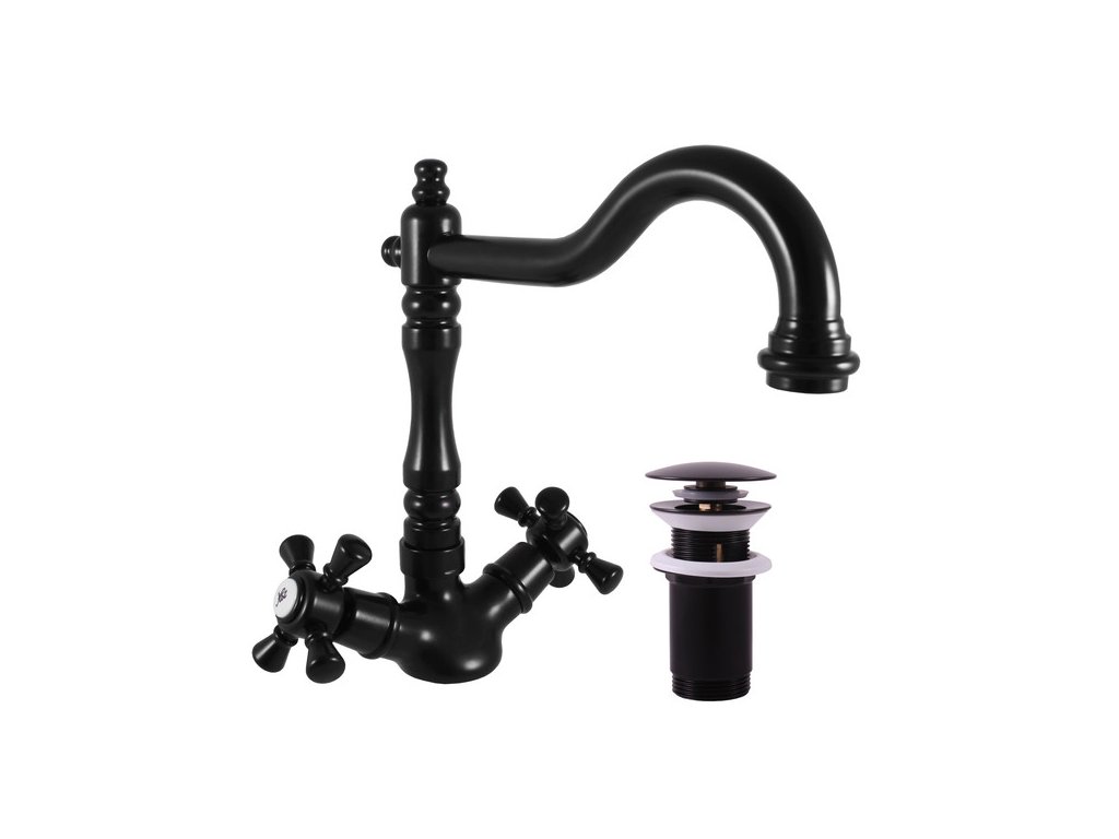 MORAVA RETRO - смеситель для умывальника с сифоном CLICK-CLACK, цвет черный матовый, арт. MK321.5/8CMAT, RAV Slezák