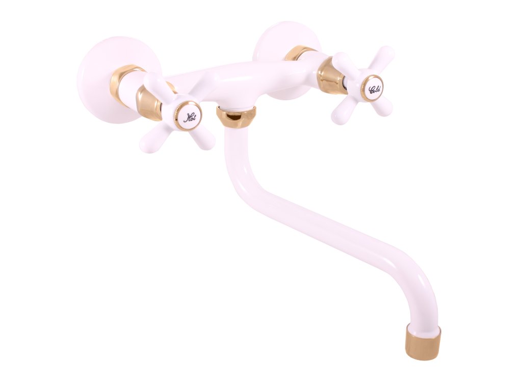 MORAVA RETRO - смеситель кухонный/для умывальника настенный, цвет белый/золотистый глянцевый, арт. MK101.5/21BZ, RAV Slezák