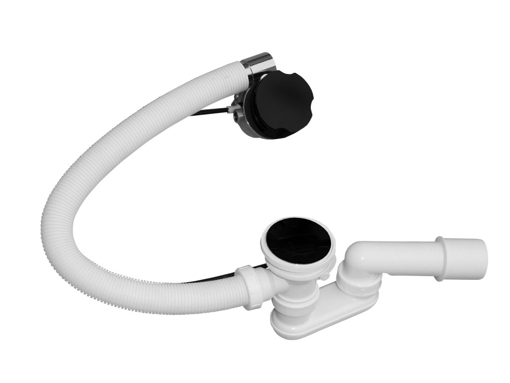 сифон для ванны с наполнением водой через слив-перелив, полуавтомат, металл/пластик, 570 мм., цвет черный матовый, арт. NP0002/570CMAT, RAV Slezák