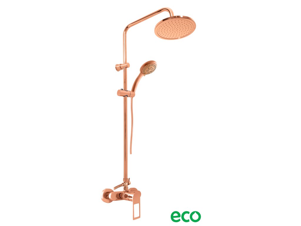NIL - смеситель для душа с душевым набором и стойкой с головной лейкой, цвет золотисто-розовый крацованный, арт. NL282.5/7ZRK, RAV Slezák