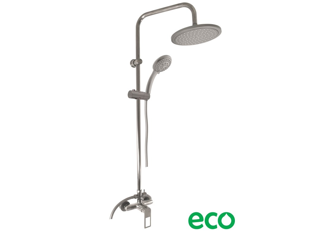 NIL - смеситель для душа с душевым набором и стойкой с головной лейкой, цвет серый металлик глянцевый, арт. NL282.5/7MGL, RAV Slezák