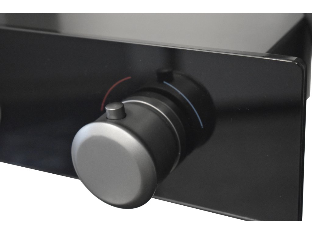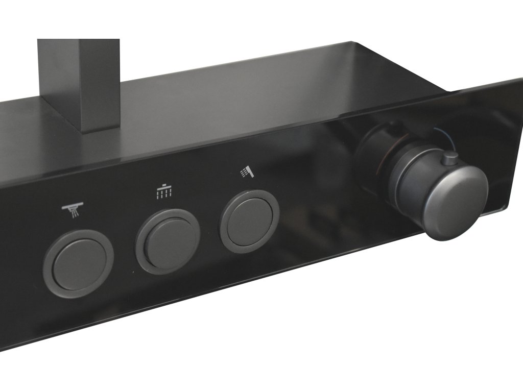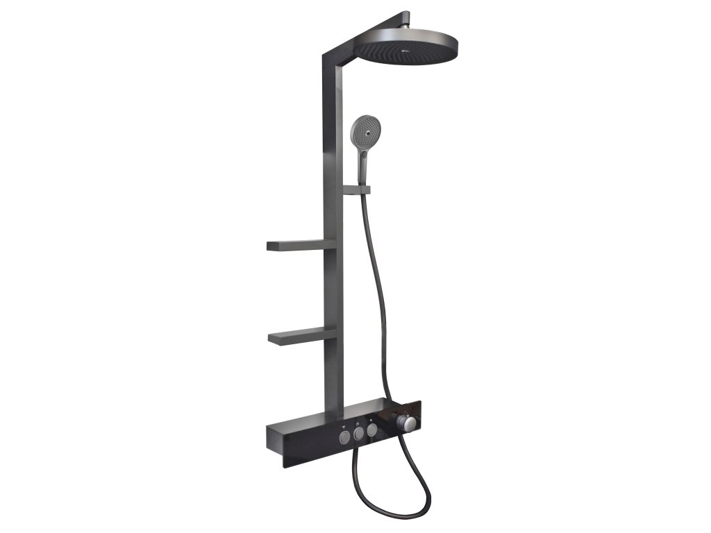 Смеситель для душа с фиксированной штангой, верхним и ручным душем, полка цвета «металлик-серый».
