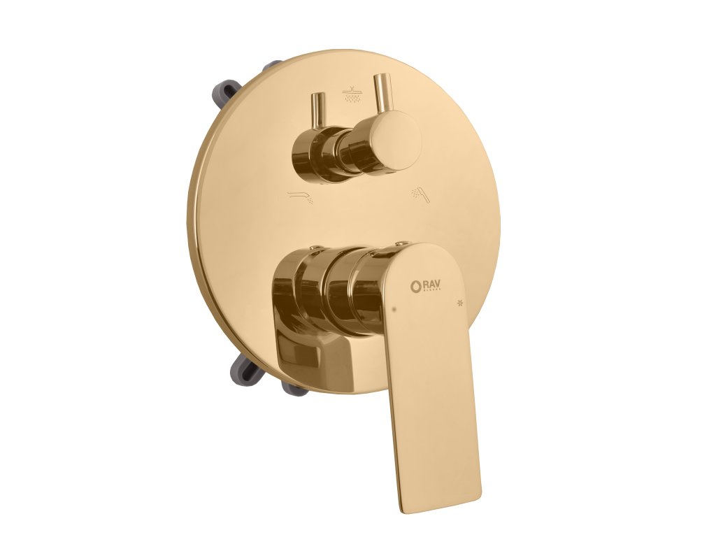 NIL - смеситель для скрытого монтажа, настенный 3-х режимный (поворотный), цвет золотистый глянцевый, арт. NL187BOXZ, RAV Slezák