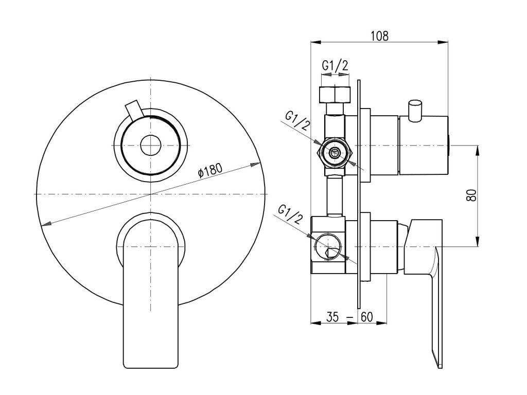 Встраиваемый трехходовой смеситель для ванны/душа с переключателем.