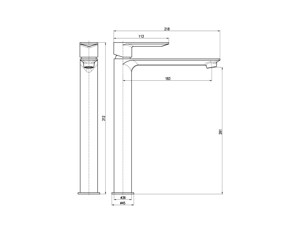 Смеситель для умывальника напольный без отверстия для слива, высокий.