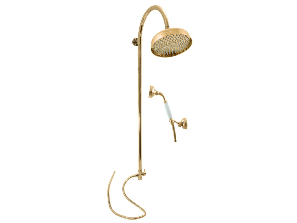 душевой комплект (стойка, головная и ручная лейка, шланг, держатель ручной лейки, дивертор), цвет золотистый глянцевый, арт. SK0070Z, RAV Slezák