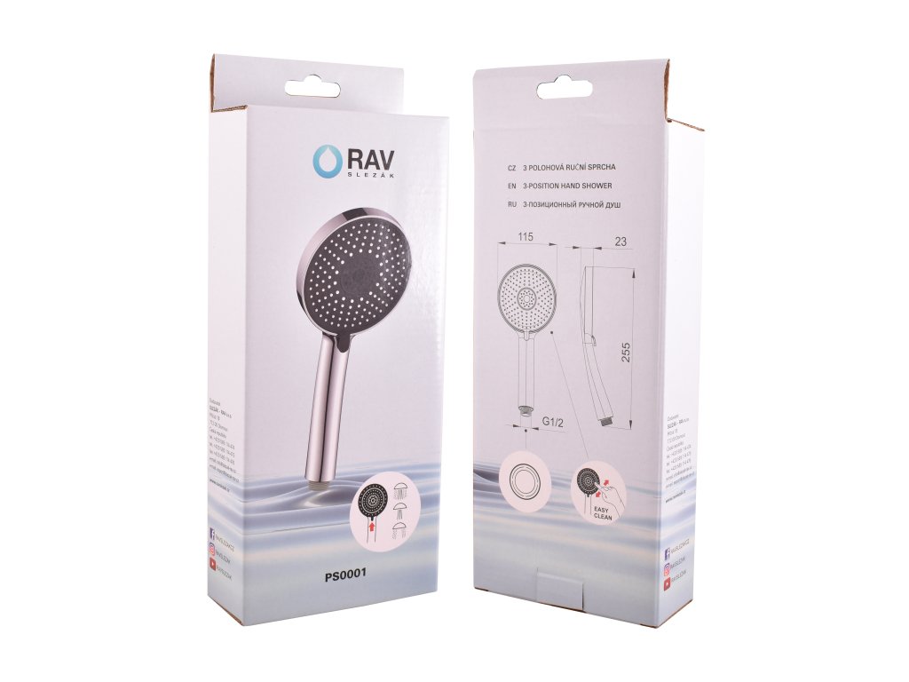 лейка ручного душа, d115 мм., функция EasyClean, пластик, 3-и режима, цвет хром, арт. PS0001, RAV Slezák