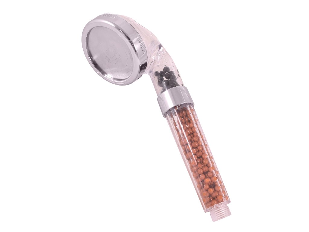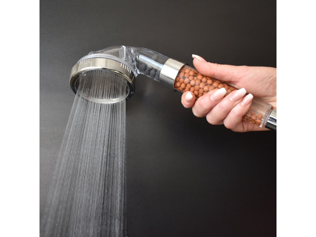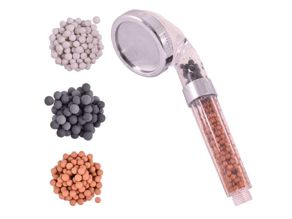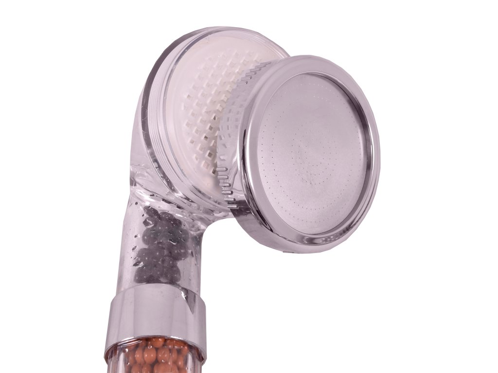 Фильтр-душ содержит 3 вида биоактивных минеральных камней, которые удаляют хлор из воды, обеспечивают правильную циркуляцию и аэрацию воды, а также её равномерное распределение по всем форсункам . Кроме того, благодаря им форсунки не засоряются известковым налётом, и даже при очень жёсткой воде душ легко разбирается для очистки.