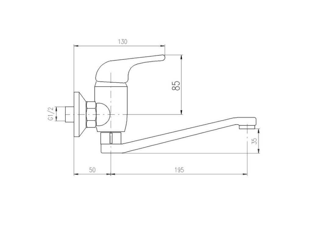 Настенный смеситель для мойки/раковины с плоским S-образным рычагом 195 мм.
