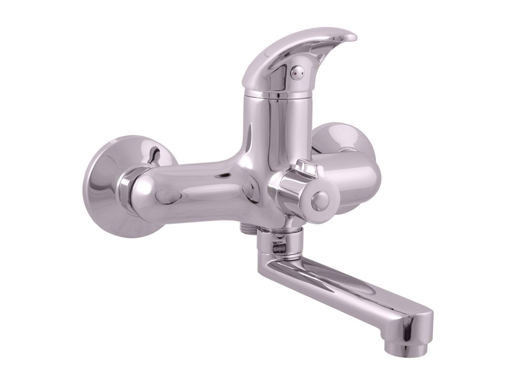 Настенный смеситель для ванны с плоским поворотным рычагом.