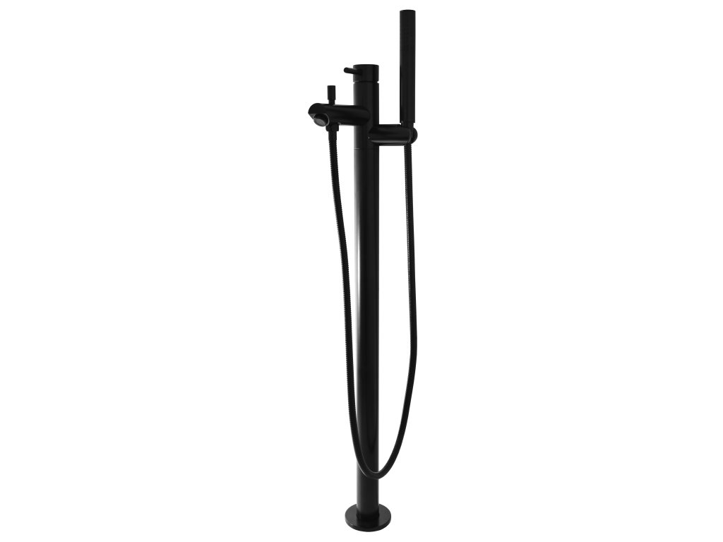 Смеситель для ванны, высокий, отдельно стоящий, с душем - матовый черный.