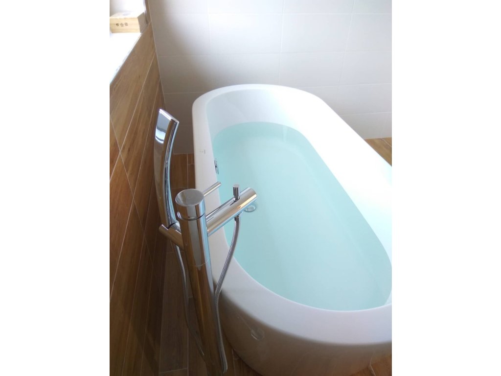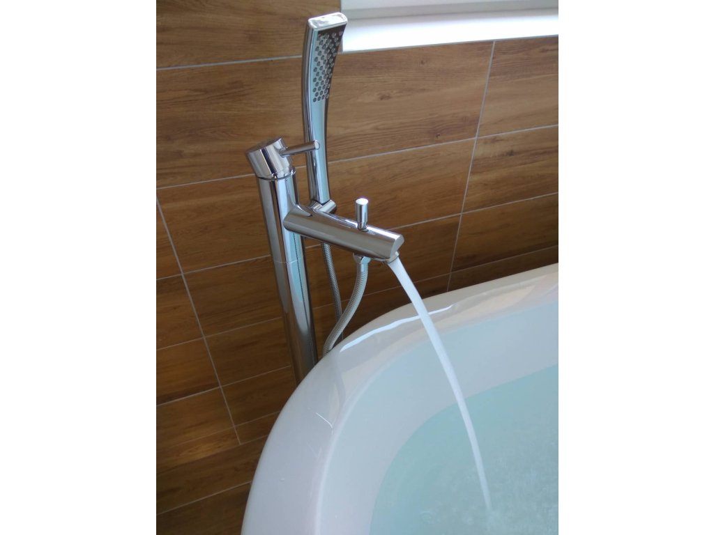 Смеситель для ванны, высокий, отдельно стоящий, с душем.
