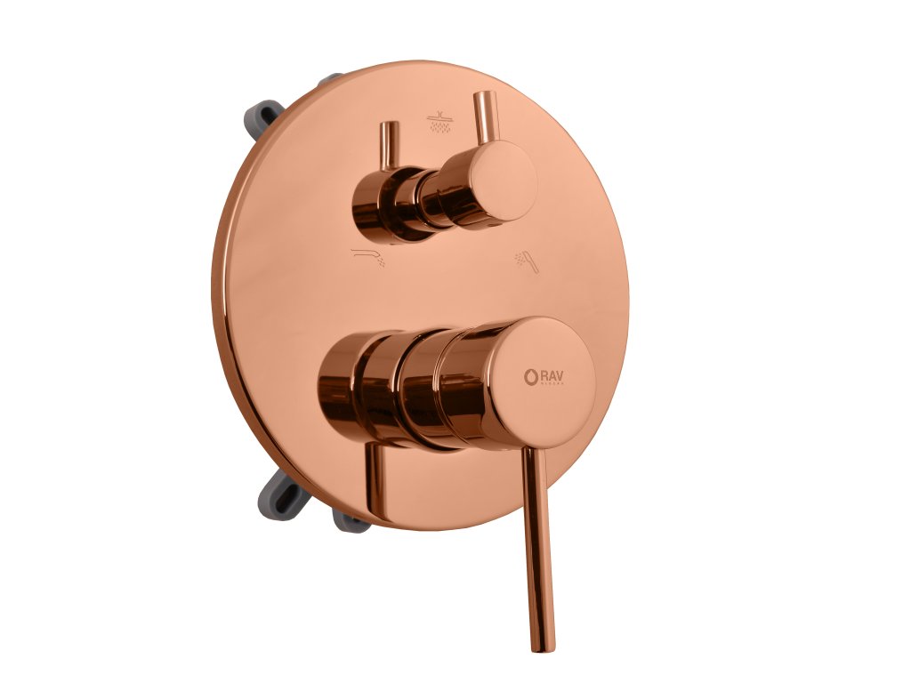 SEINA - смеситель для скрытого монтажа, настенный 3-х режимный (поворотный), цвет золотисто-розовый крацованный, арт. SE987BOXZRK, RAV Slezák