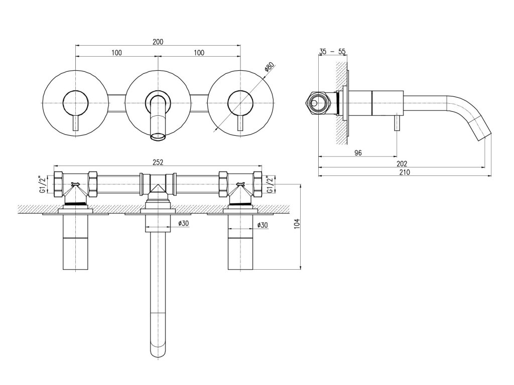 SEINA - смеситель для умывальника/кухонный настенный, скрытый монтажа, цвет золотисто-розовый крацованный, арт. SE131ZRK, RAV Slezák