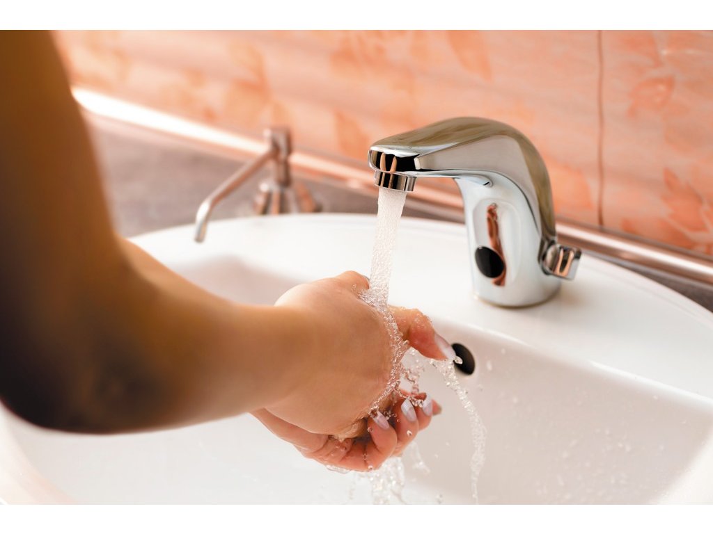 - реагирует на присутствие рук в зоне обнаружения на расстоянии 0,3 м от датчика, немедленно включая воду